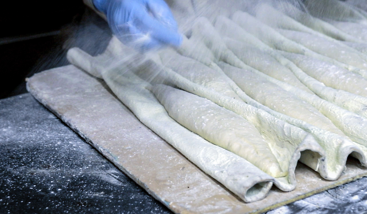 日清製粉さんからお話をいただいて、はじめは黄色い粉のフランスパンを作りたいというイメージからはじまりました。従来とは違ったアプローチの粉が出来ないかと…いろいろと試行錯誤をしていく中で、たどりついたのがスヴィンゴールドです。扱いやすさについて他の粉と比べて、扱いづらいんじゃないかと思われがちですが、しっかり熟成してあげるとかポイントをおさえれば、安定して仕上がるし、きっちり味は乗ってくるので。実際使ってみると扱いやすい粉だと思います。