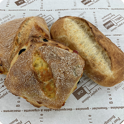 粉自体に旨味があるのでどんなパンを焼いても美味しく、フランスパンやリーンな食パンなどで